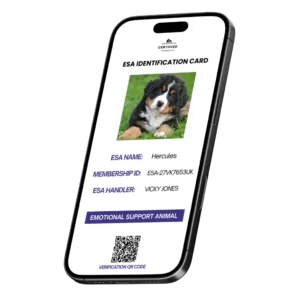 It includes your ESA’s photo, your registration details, and a verifiable QR code linking to your membership status — all in a clear, travel-friendly format you can show from your phone or print if needed.
